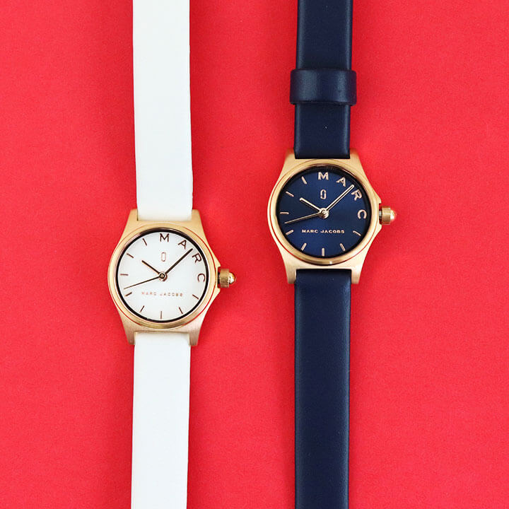 【1908】Marc Jacobs マーク ジェイコブス 細身のシンプルウォッチ ヘンリーディンキーからホワイトとネイビーの腕時計が登場! 細身で軽いのでアクセサリー感覚でつけられます